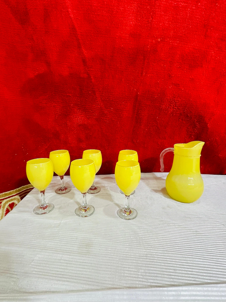 Serve in style with this elegant 7 Piece Jug and Glass Set, designed to make every gathering special. The set includes 1 jug and 6 stylish stem glasses, making it ideal for serving juice, water, cocktails, mocktails, soft drinks, and more.