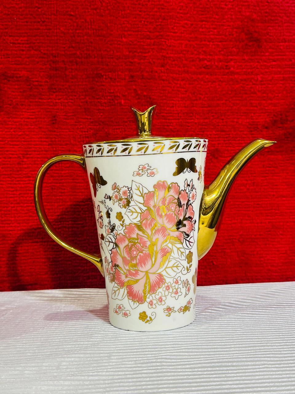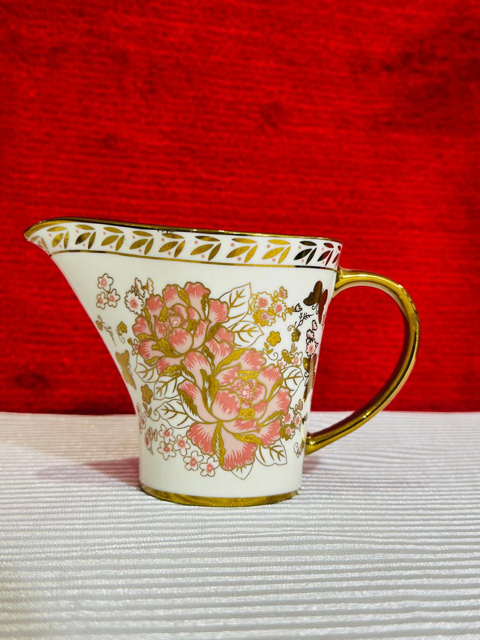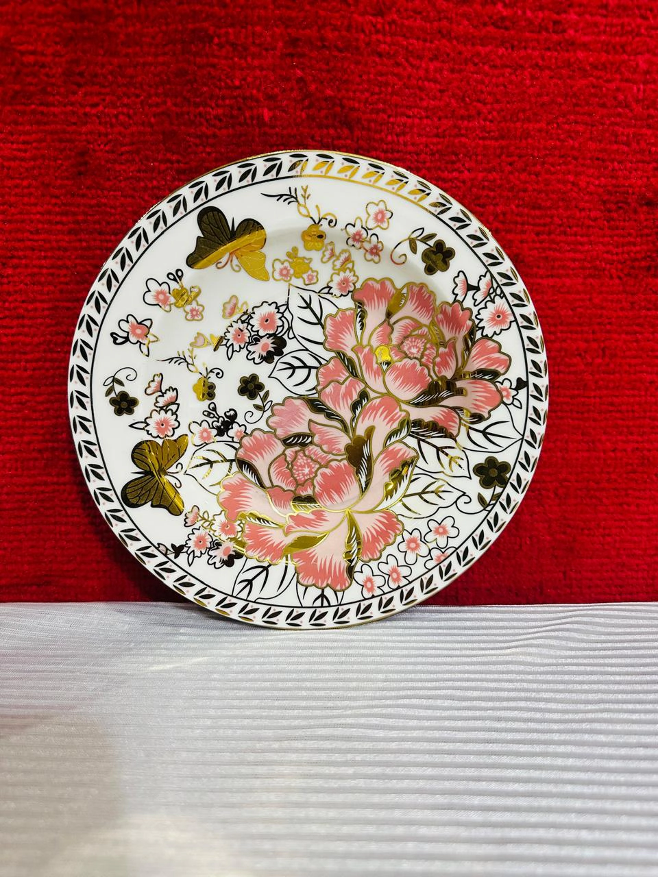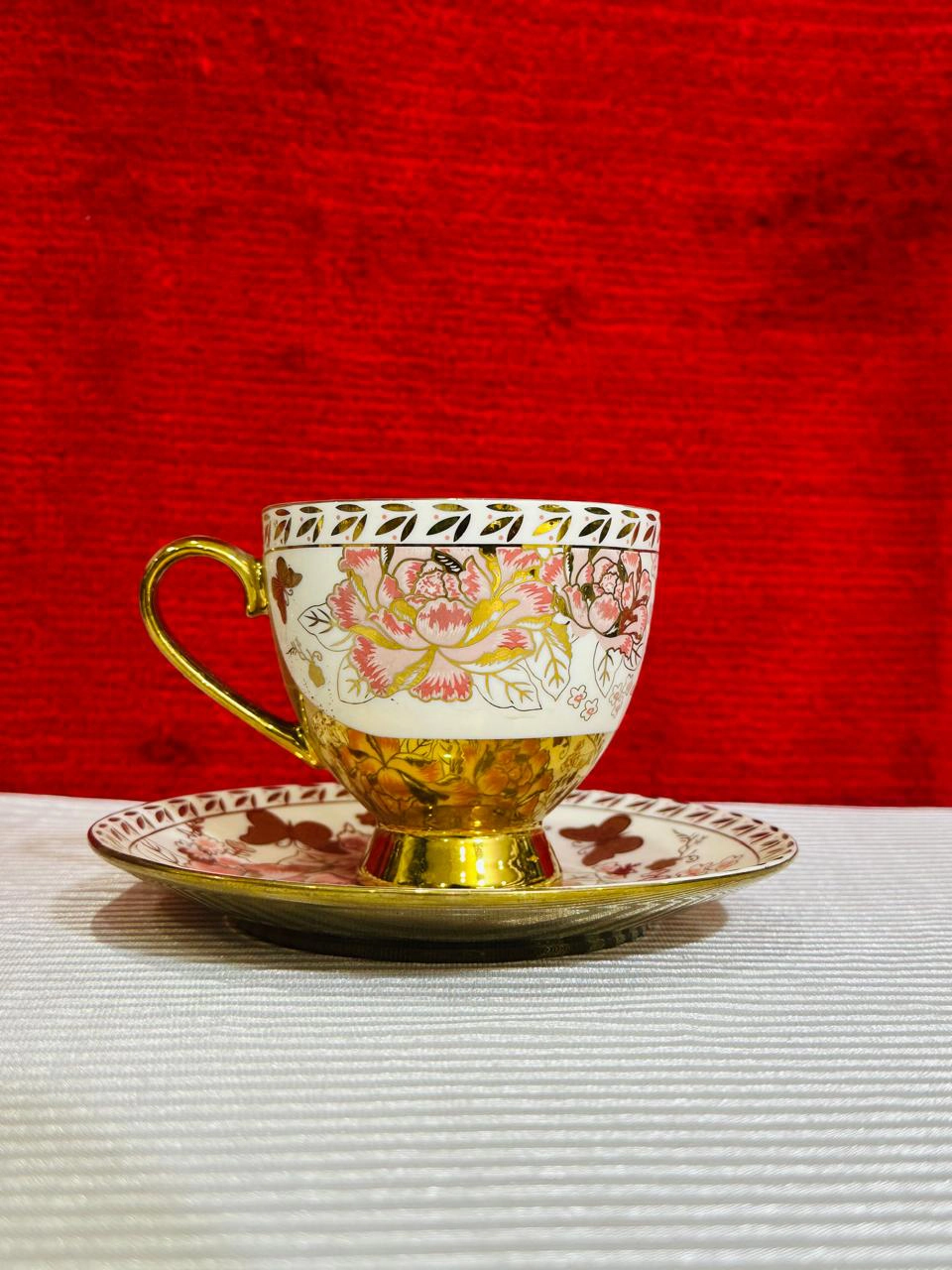 Buy the Royal Bone China 61-Piece Floral Dinner Set with golden butterfly design. Perfect luxury dinnerware for weddings, jahez, and family dining. Elegant, durable & timeless.