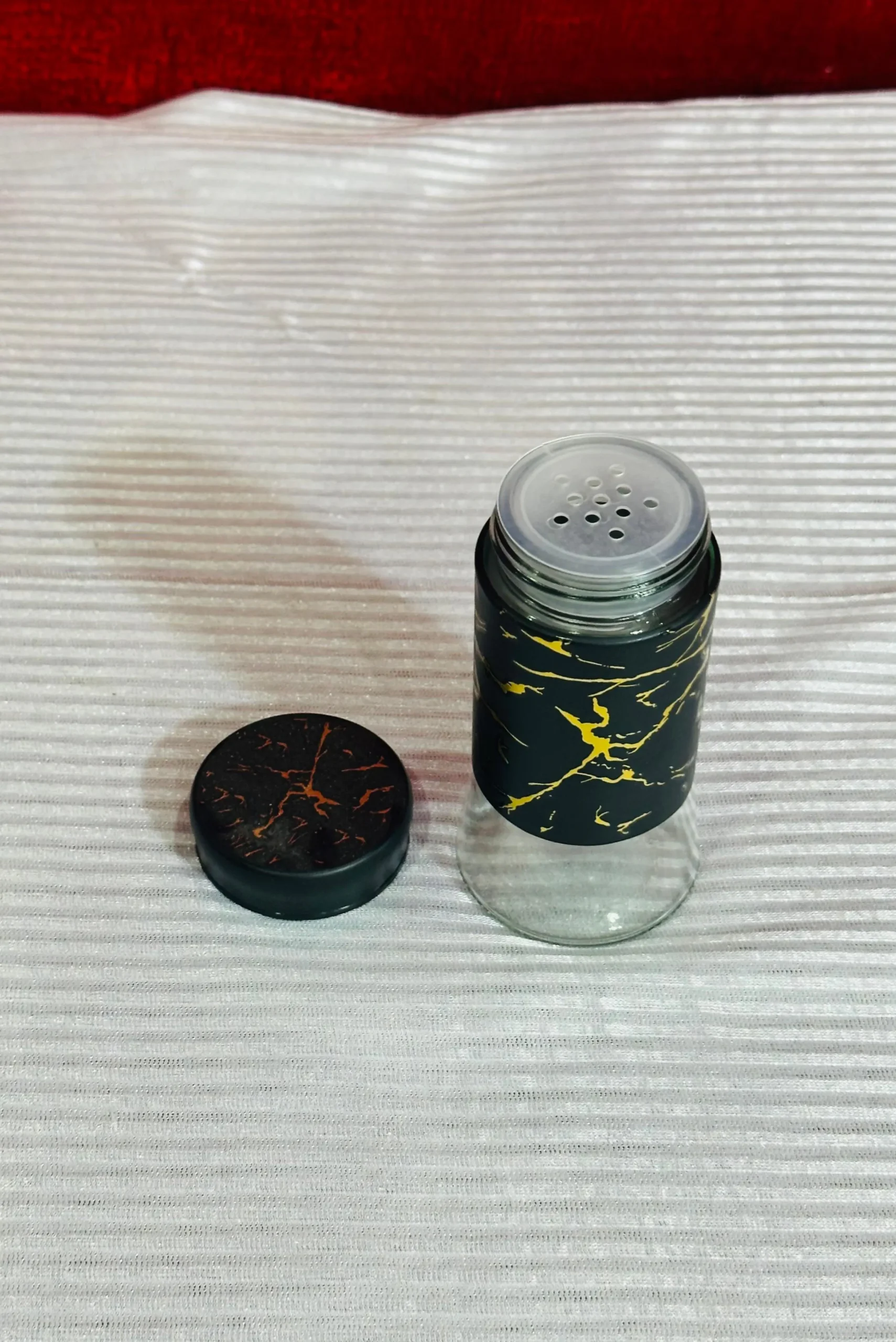 Keep your kitchen neat and spices fresh with this premium glass masala jar with shaker lid. Designed with a durable glass body and elegant black-gold design, it adds both style and functionality to your kitchen.